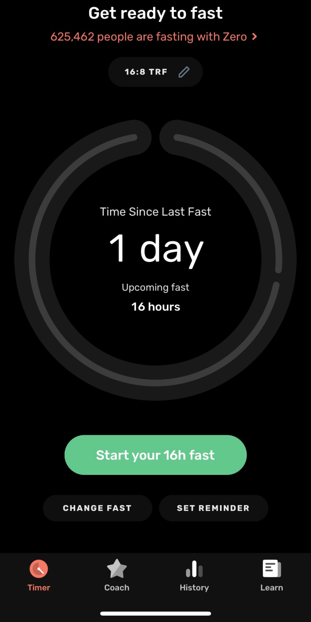 It’s not really the biggest change to be fair. We eat dinners a little earlier and I skip breakfast. But I log it, and it keeps me from having an extra late night glass of wine, or from having that protein bar that tastes like cookie dough. I’m logging this though the app Zero.